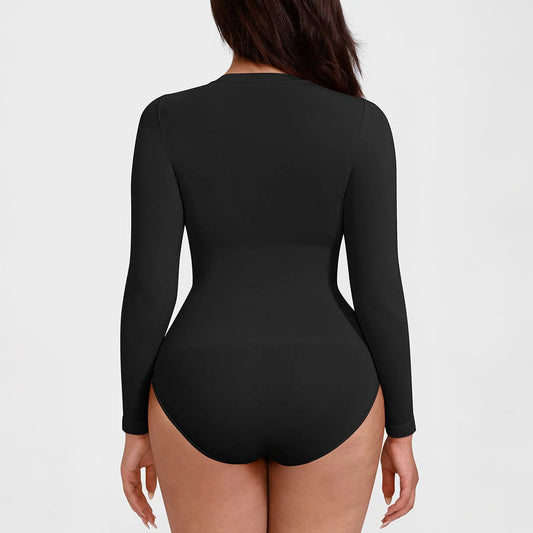 Shaping Long-Sleeve Bodysuit with V-Neckline (Black)