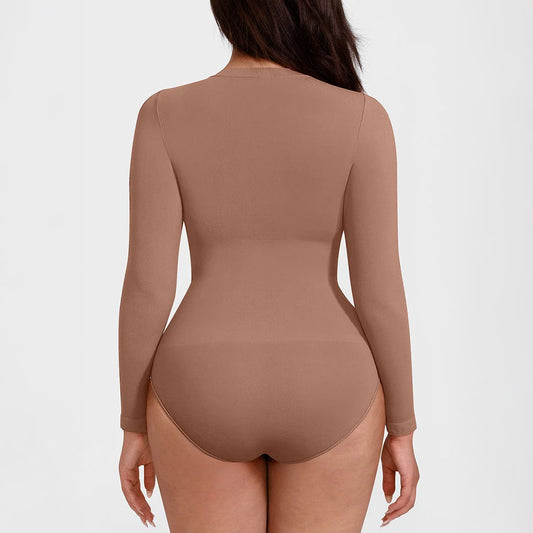 Light Brown Seamless Crew Neck Long Sleeve Bodysuit